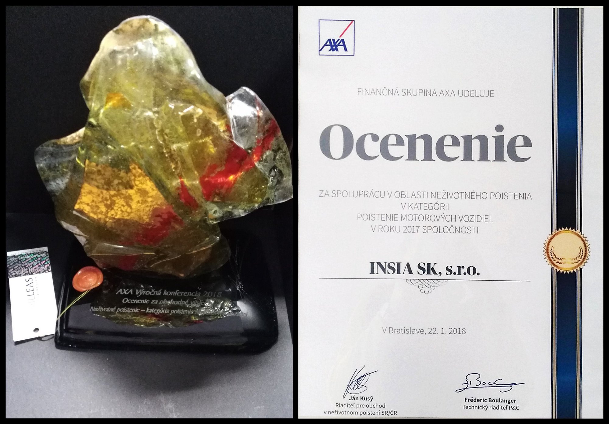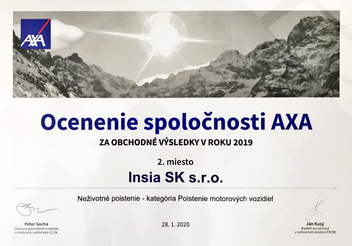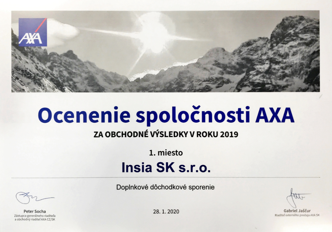 Za výborné produkčné výsledky dosiahnuté v roku 2019 v spoločnosti AXA, získala INSIA SK ocenenie v dvoch kategóriách.